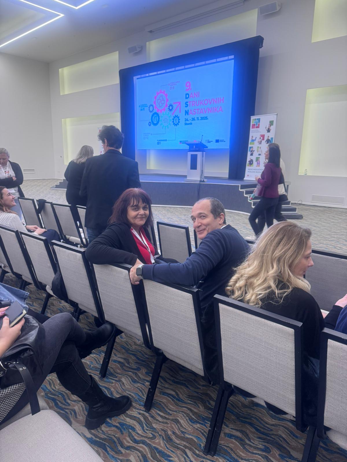 IX. Dani strukovnih nastavnika održani su ove godine u Šibeniku u organizaciji Agencije za strukovno obrazovanje i obrazovanje odraslih. Među 500 okupljenih nastavnika iz cijele Hrvatske bili su i Nela Vujević, Ana Špoljarić i Tomislav Jančec iz Trgovačke škole, Zagreb.