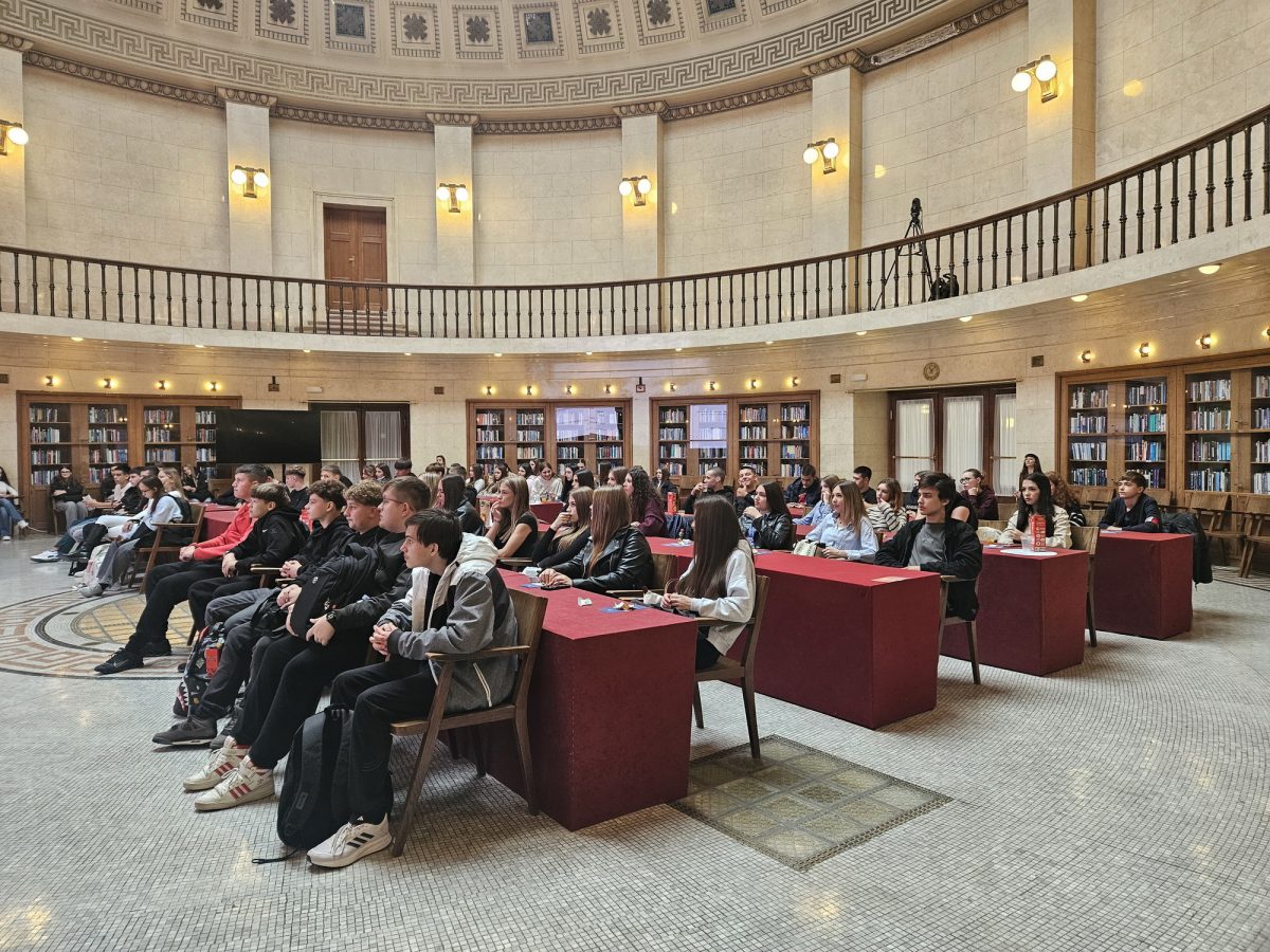 U samom srcu Zagreba, na Trgu hrvatskih velikana, iza prepoznatljivog pročelja obloženog bijelim bračkim kamenom, donose se odluke koje oblikuju hrvatsko gospodarstvo. Učenici 1.Ak, 1. Bk i 1. Ck, u pratnji svojih profesorica, Paule Ivok, Kristine Vilček i Zrinke Kenđelić, u četvrtak, 23. listopada 2025., imali su priliku zaviriti u ovaj zanimljivi svijet središnje banke Republike Hrvatske.